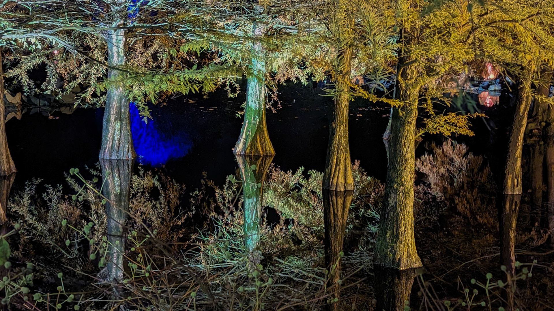 An evening in the enlighted Arboretum in Ellerhoop.